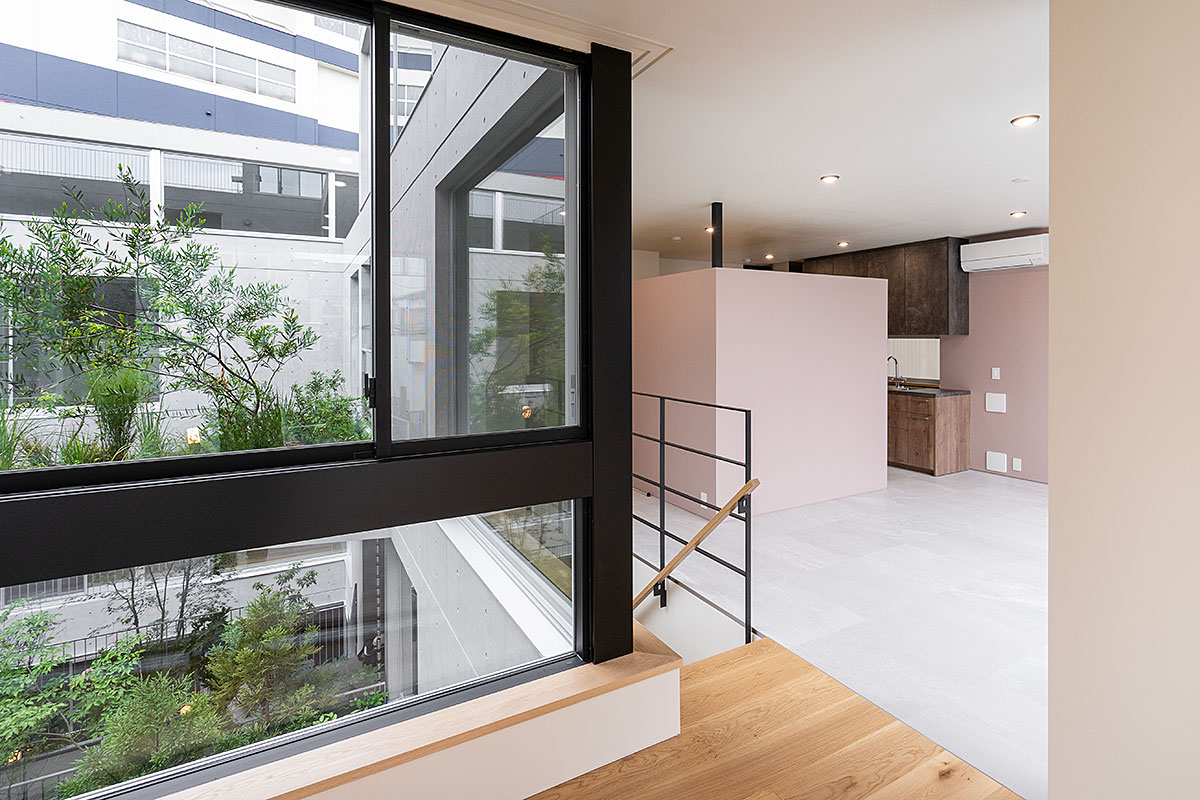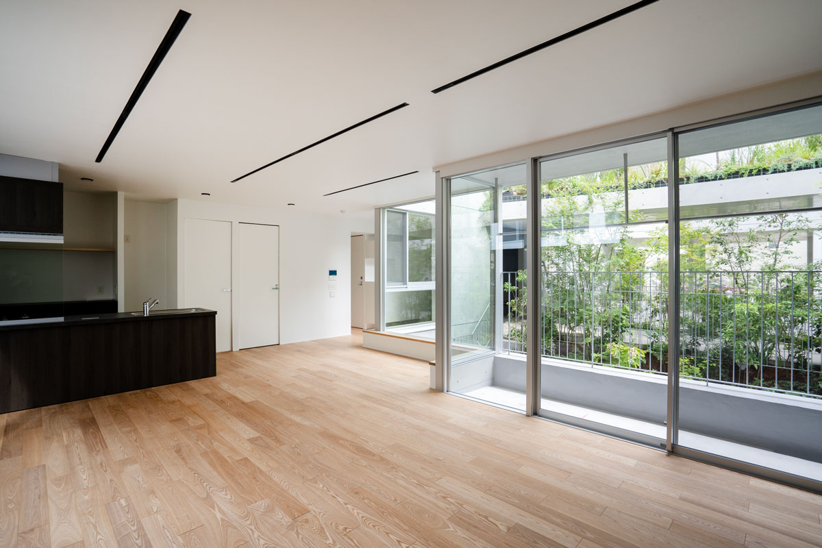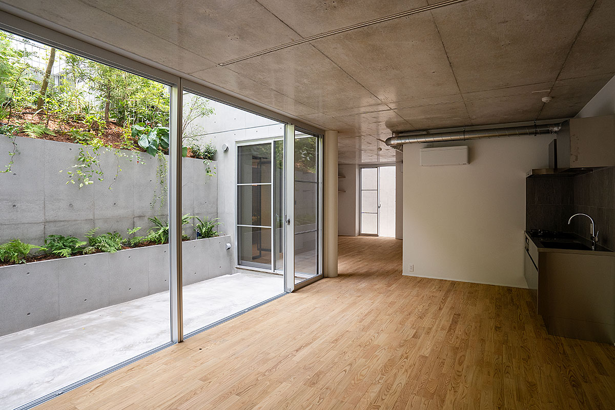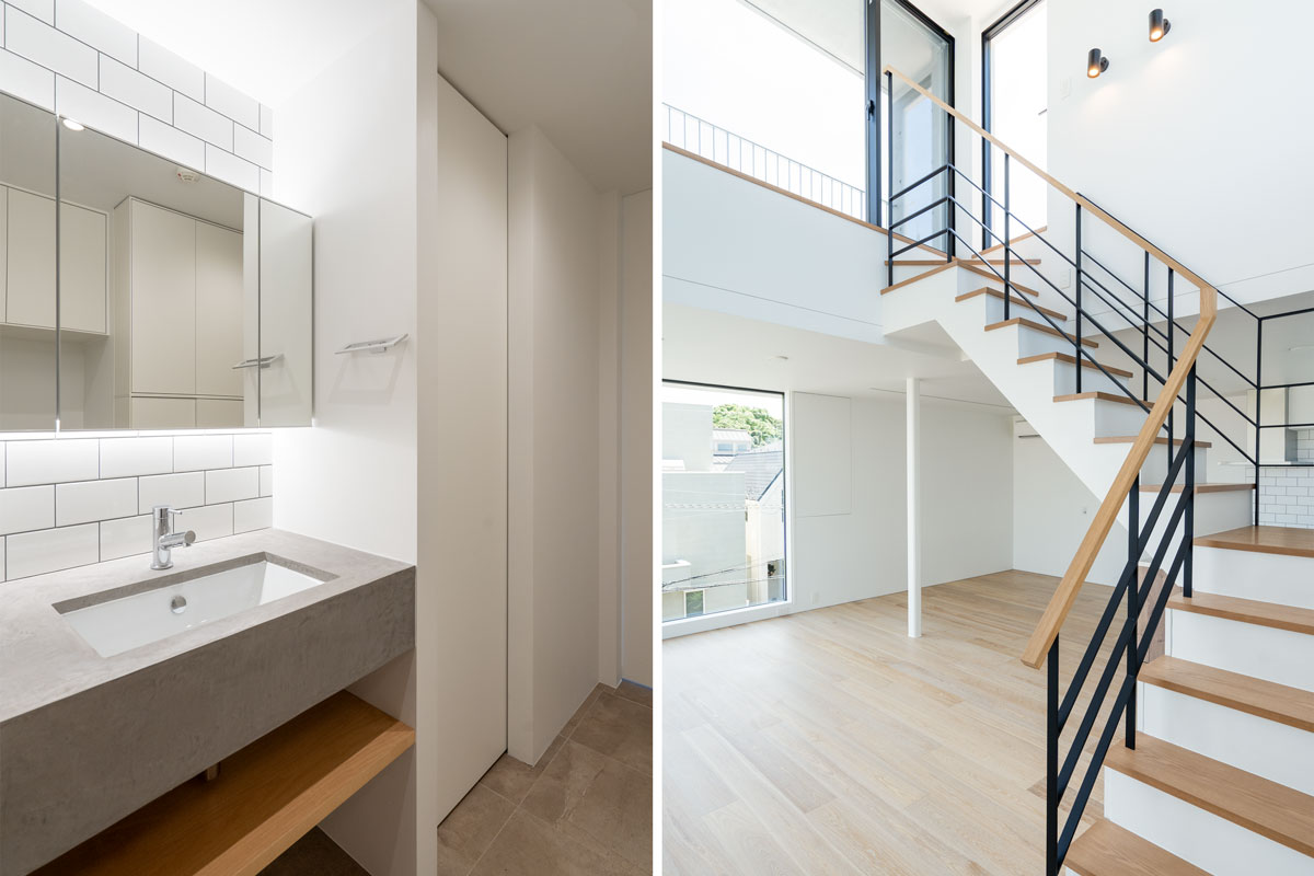 用途:共同住宅(コーポラティブハウス)|敷地面積:667.96㎡|建築面積:369.32㎡|延床面積:667.79㎡|構造:RC造 地上3階+塔屋 地下1階|施工期間:2021.04-2022.06|建築・スケルトン監理:奥野公章建築設計室|インフィル監理:奥野公章建築設計室・入江剛史建築設計事務所|構造:小西泰孝建築構造設計|設備:長谷川設備計画|施工:河津建設|外構植栽:イケガミ|企画・プロデュース:アーキネット